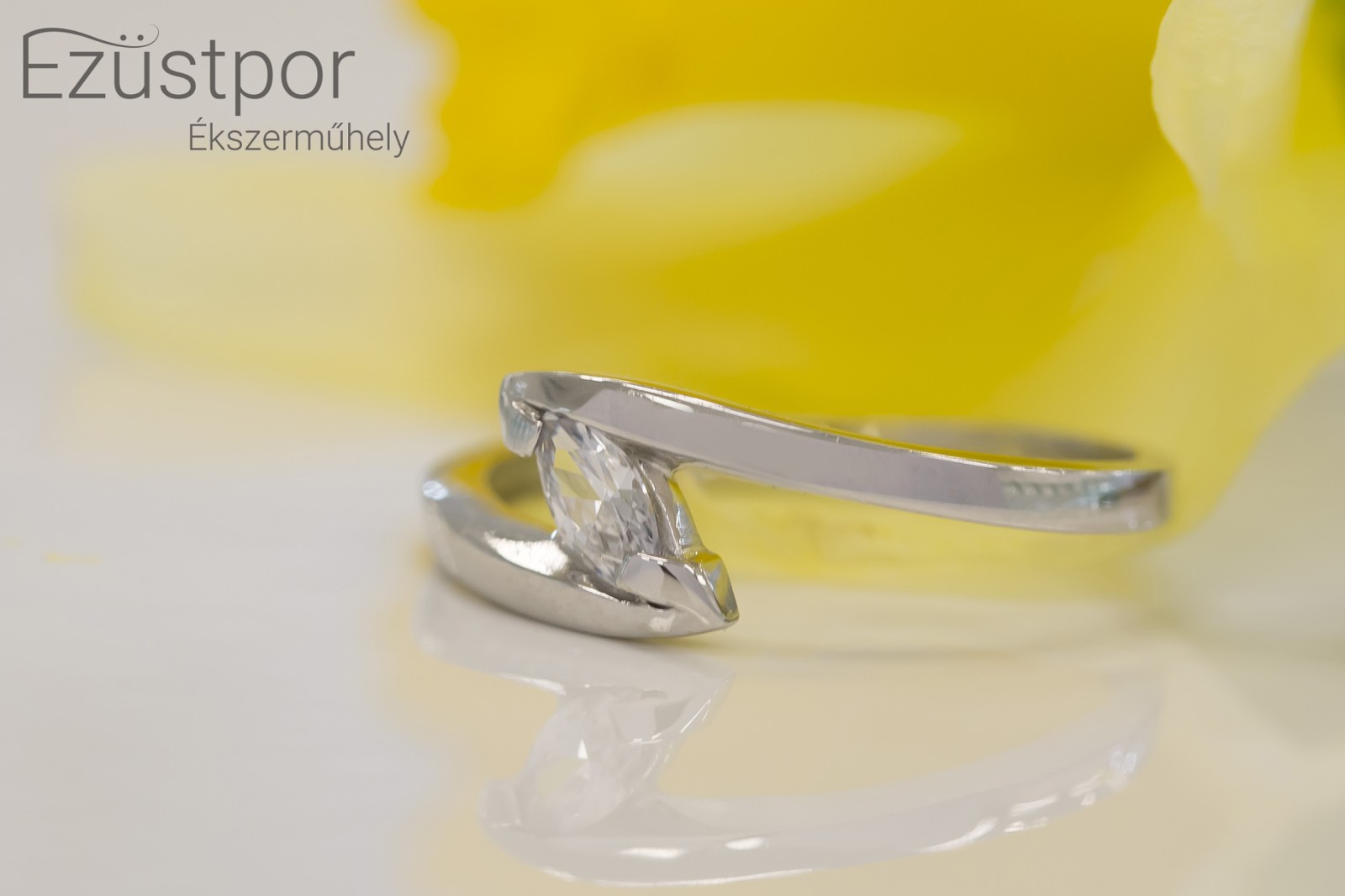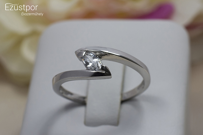 Kiváló minőségű fehérarany divatékszer, amely 585-ös finomságú aranyból készült. Hivatalos magyar fémjellel ellátott. Navett formájú cirkónia kővel díszített. AGY01259