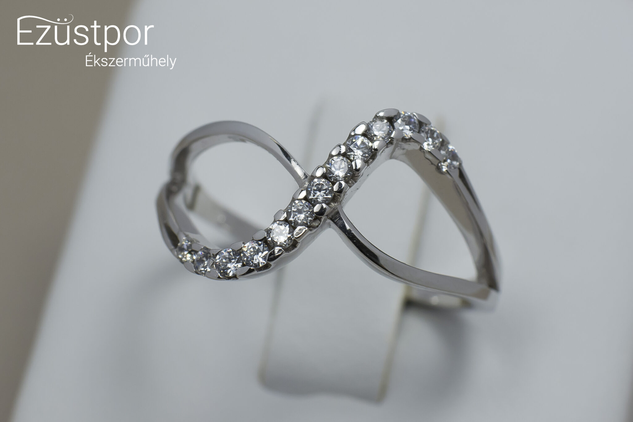 Kiváló minőségű fehér arany gyűrű, amely 585-ös finomságú aranyból készült. Hivatalos magyar fémjellel ellátott. Cikrónia kövekkel díszítve.