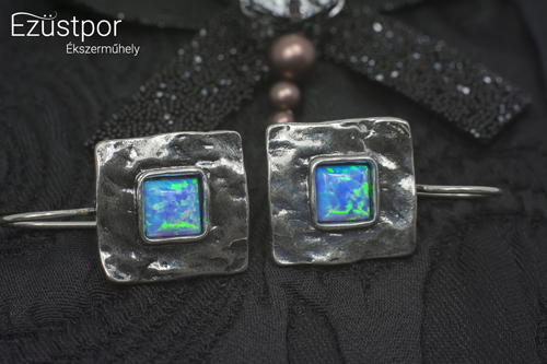 | Ezüst Fülbevaló | antikolt felület, opál kő |