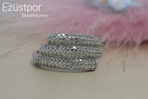 925-ös finomságú, ezüst gyűrű ródiumozott felülettel, gyönyörű cirkónia kövekkel. Hivatalos fémjellel ellátva.